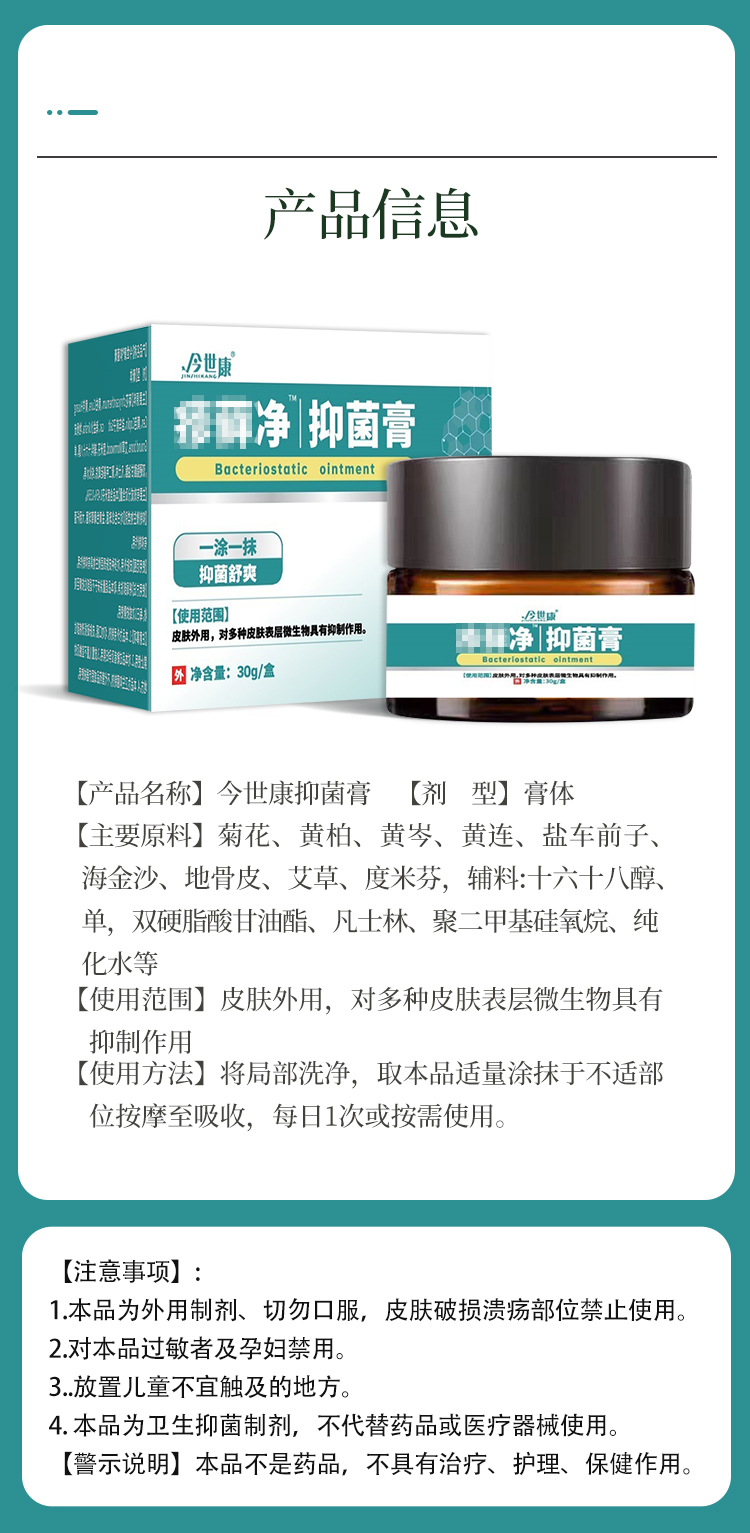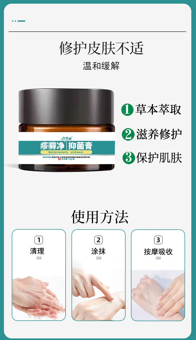 疹癬凈抑菌膏,是今世康廠家專為皮膚不適研制,用于清肌抑菌,溫和緩解,修護(hù)肌膚,草本萃取,滋養(yǎng)修護(hù),皮膚外用,抑菌膏生產(chǎn)廠家,支持不同材質(zhì)、規(guī)格、形狀、包裝設(shè)計(jì),滿足多種渠道需求的抑菌膏加工一站式oem貼牌定制服務(wù)。