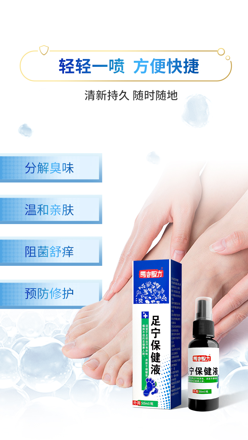 馬寺驗(yàn)方足寧保健液,針對(duì)腳部各種問(wèn)題,植物萃取精華,快速緩解足部不適,遠(yuǎn)離腳癢腳臭,使用方便,分量足,源頭噴劑生產(chǎn)廠家,支持噴劑加工oem貼牌個(gè)性化定制,可代理批發(fā),出貨快。